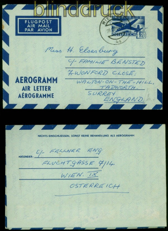 Österreich Luftpost-Faltbrief Mi # LF 6 gestempelt 28.12.1960 nach England 4,20 Schilling Luftpost-Faltbrief aus Wien 28.12.1960 nach Walton on the hill in England Erhaltung siehe Scan