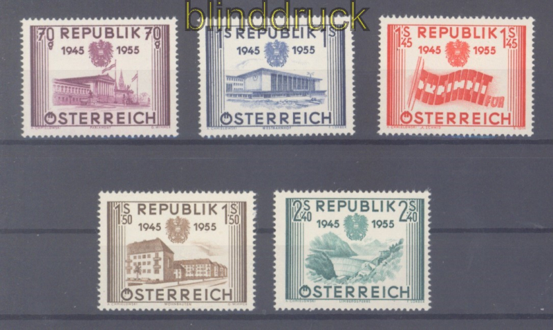 Österreich Mi # 1012/16 postfrisch 10 Jahre Wiederherstellung der Unabhängigkeit der Republik Österreichh komplette Ausgabe postfrisch Erhaltung siehe Scan