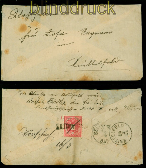 Österreich Mi # 46 EF rückseitig 1884 nach Knittelfeld diverse Vermerke (54987)