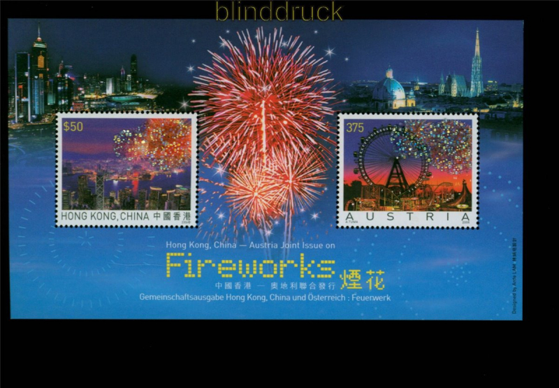 Österreich Mi # Block 35 postfrisch Blockausgabe Feuerwerk mit Hongkong Blockausgabe: Feuerwerk mit aufgeklebten Kristallen Gemeinschaftsausgabe mit Hongkong postfrisch Erhaltung siehe Scan