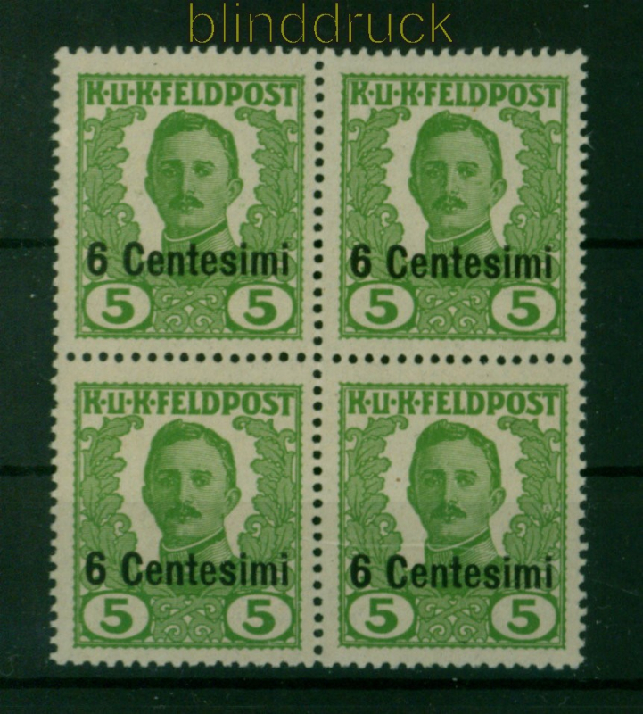 Österreich Ungarn Feldpost für Italien Mi # IV postfrischer 4er-Block Österreich-Ungarische Feldpost Aufdruckmarke 6 Centesimi auf 5 Heller grün im 4er-Block postfrisch Erhaltung siehe Scan