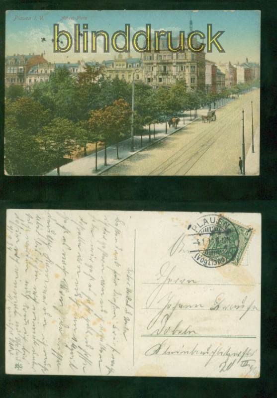 Sachsen Plauen i. V. farb-AK Albert-Platz 4.1.1914 Karte gelaufen aus Plauen 1.1.1914 Erhaltung siehe Scan