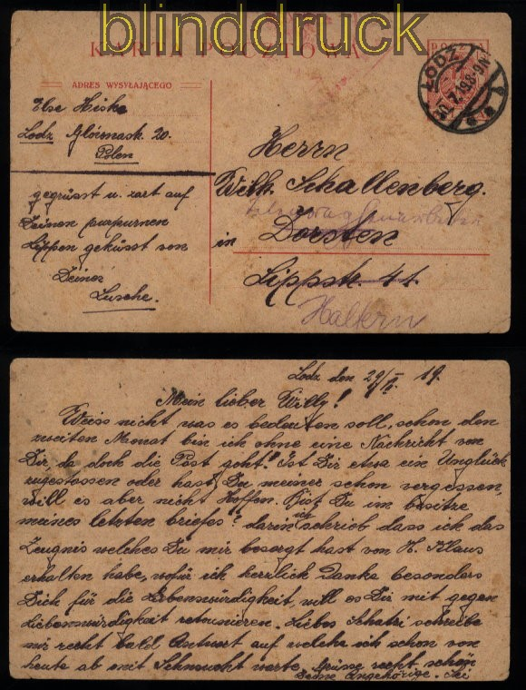 Polen GSK P 24 aus Lodz 1919 nach Dorsten mit Zensur 15 (F) Ganzsachenkarte rot mit polnischer Zensur gelaufen aus Lodz 30.7.1919 (deutscher Stempel) nach Dorsten weitergesandt nach Haltern Karte in der Mitte gefaltetund knittrig Erhaltung siehe Scan