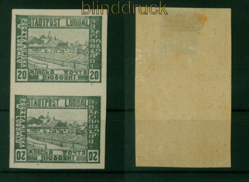 Polen Luboml Mi # III KU ungebraucht mit Falz Kehrdruckpaar geschnitten Ausgaben von Bezirks- und Lokalbehörden Bestellpostanstalten 1915 - 1918 20 H grauoliv Kehrdruckpaar aus Druckbogen geschnitten ungebraucht mit Falz rückseitig Braunpunkt Erhaltung siehe Scan