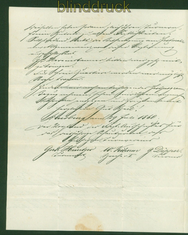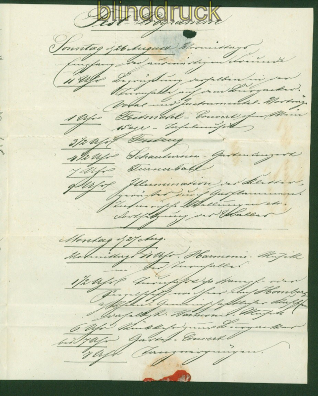 Preussen Dienstbrief Duisburg 1.8.1860 Einladung an den Turnverein Rheidt Siegen Duisburg 1.8.1860 nach Rheidt mit Inhalt eine Einladung an den Turnverein Reidt mit Festprogramm Erhaltung siehe Scan