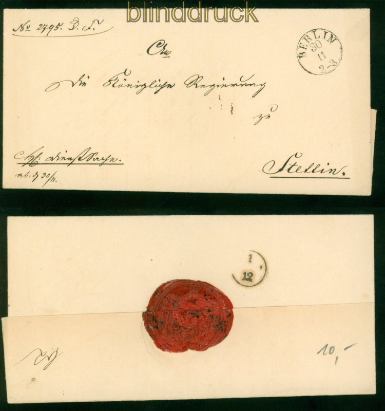 Preussen Dienstbriefhülle Berlin 30.11. nach Stettin ohne Inhalt ohne Inhalt Erhaltung siehe Scan