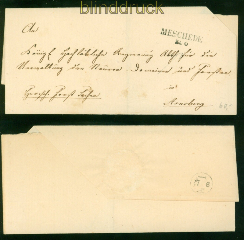 Preussen Dienstbriefhülle Meschede 20.6. nach Arnsberg ohne Inhalt aus Meschede 20.6. Feuser # 2248-4 nach Arnsberg ohne Inhalt Erhaltung siehe Scan