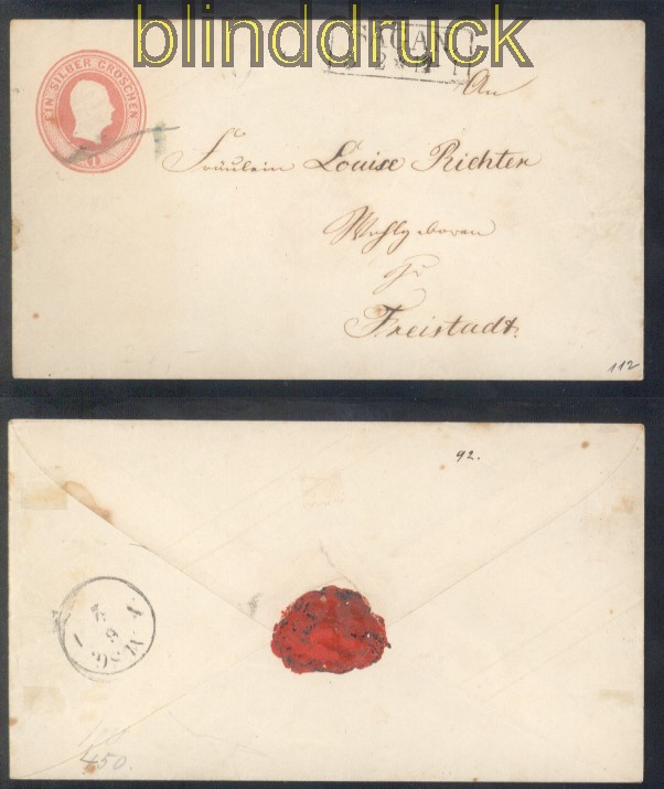 Preussen Ganzsachenumschlag U 1 A Wst. 1 Sagan nach Freistadt ein Silbergroschen Ganzsachenumschlag GSU gelaufen aus Sagan nach Freistadt Erhaltung siehe Scan