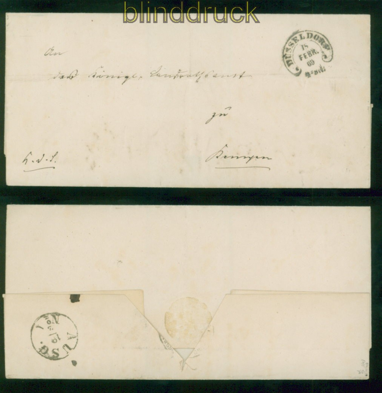 Preussen Hufeisenstempel Düsseldorf Spalink # 11-5 Dienstbriefhülle 1869 (59427)