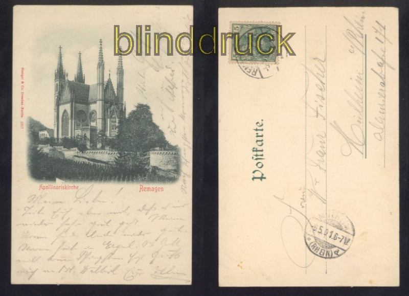 Rheinland-Pfalz Remagen sw-AK Apollinariskirche 1901 Karte gelaufen aus Remagen 5.5.1901 nach Mülheim am Rhein Erhaltung siehe Scan