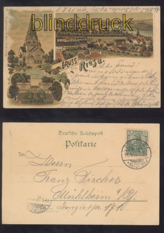 Sachsen Gruss aus Riesa farb-AK zwei Ansichten 1900 zwei Ansichten Karte gelaufen aus Dresden 11.9.1900 nach Mülheim am Rhein Erhaltung siehe Scan