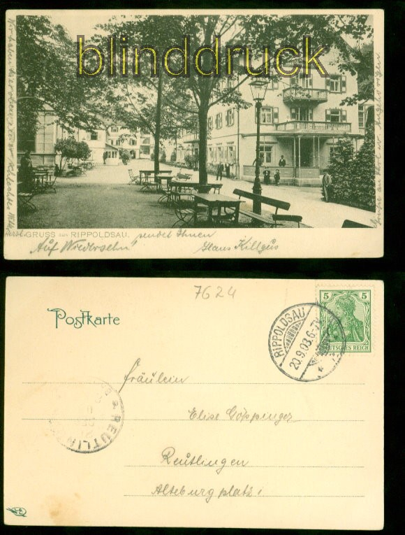 Baden-Württemberg Gruss aus Rippoldsau sw-AK Strassenansicht 1903 nach Reutlingenn Karte gelaufen aus Rippoldsau 20.9.1903 nach Reutlingen Erhaltung siehe Scan