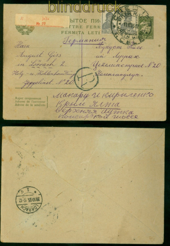 Russland GSU-R-Brief 1935 aus Jalta nach Lörrach (56118)