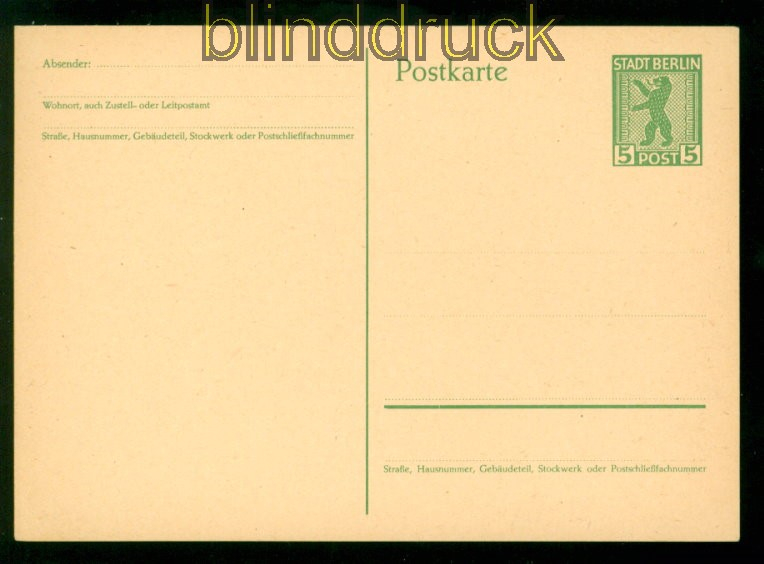Sowjetische Besatzungszone Berlin und Brandenburg GSK P 1 ungebraucht 5 Pfennig Berliner Bär 5 Pfennig Ganzsachenkarte Berliner Bär ungebraucht Erhaltung siehe Scan