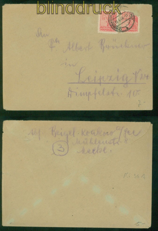Sowjetische Besatzszone SBZ MI # 36 y (2) Fernbrief Krakow am See 18.4.1946 nach Leipzig Mecklenburg-Vorpommern portogerechter Fernbrief rechte beschädigt gelaufen als Fernbrief aus Krakow am See 18.4.1946 nach Leipzig Erhaltung siehe Scan