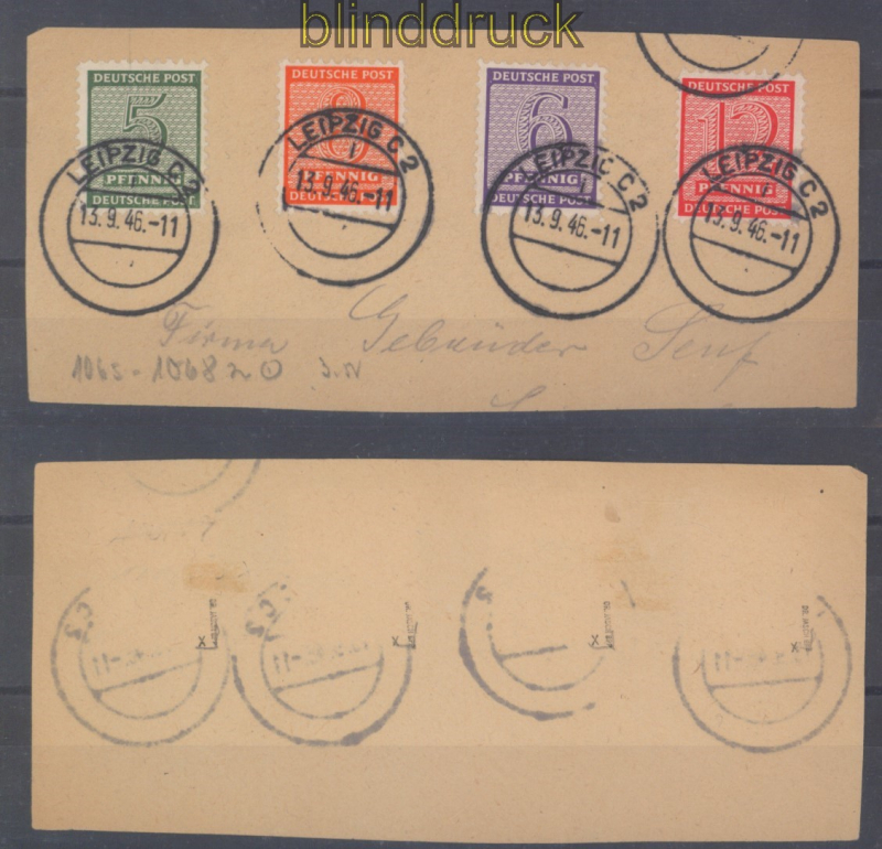 Sowjetische Besatzungszone West-Sachsen Mi # 120/23 X gestempelt auf Briefstück geprüft Jasch BPP Ziffern (I) amtliche Versuchszähnung gestempelt auf Briefstück geprüft Jasch BPP Erhaltung siehe Scan
