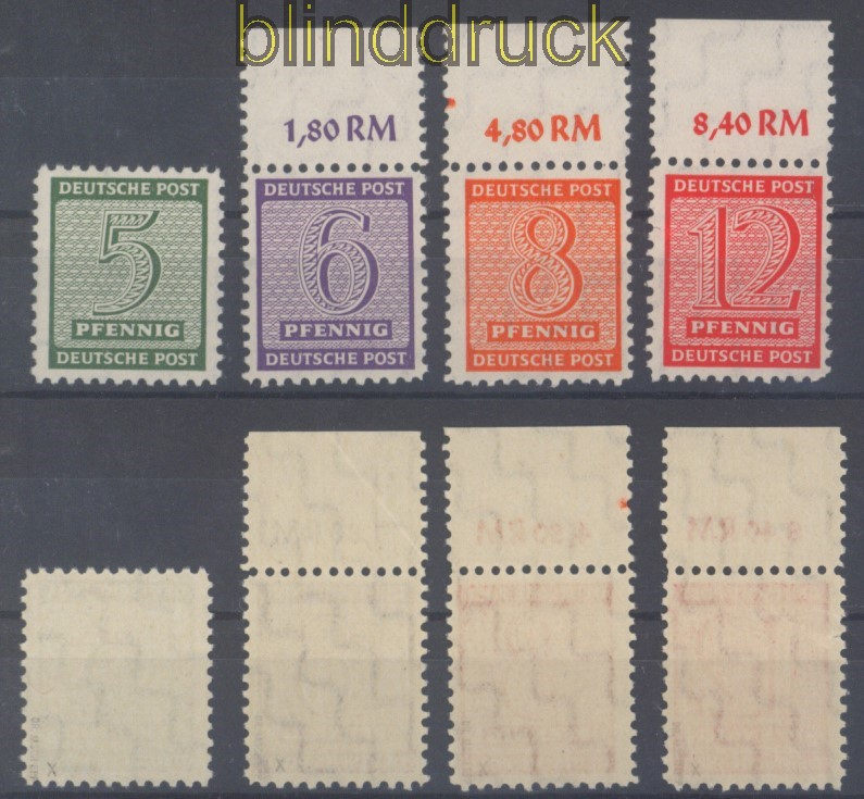 Sowjetische Besatzungszone West-Sachsen Mi # 120/23 X postfrisch geprüft Jasch BPP Ziffern (I) amtliche Versuchszähnung bis auf eine Marke vom Oberrand (ungefaltet) postfrisch geprüft Jasch BPP Erhaltung siehe Scan
