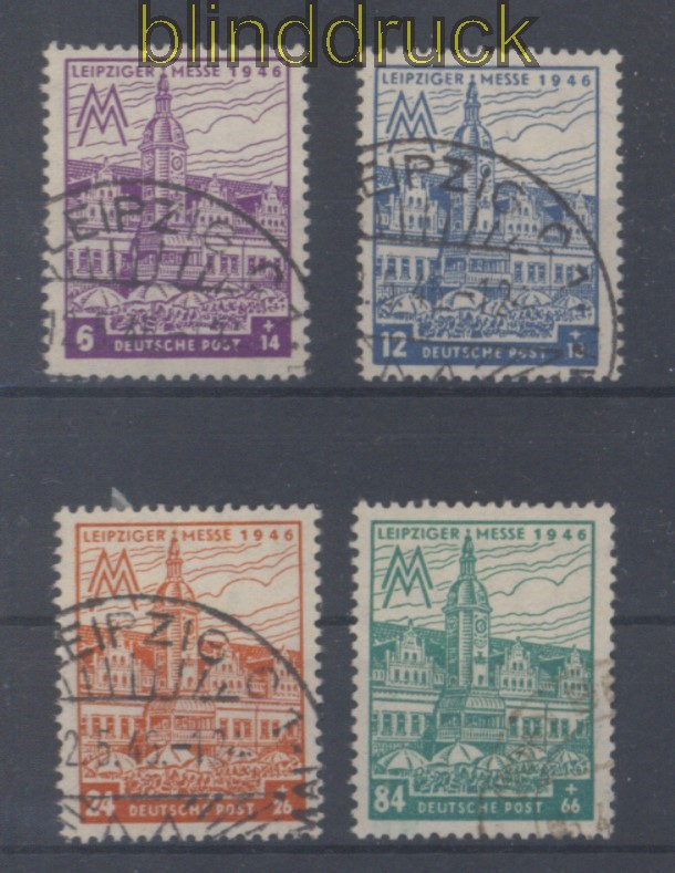 Sowjetische Besatzungszone West-Sachsen Mi # 162/65 A Y gestempelt Leipziger Messe gezähnt Wasserzeichen Y Leipziger Messe komplette Ausgabe mit Wasserzeichen Y gestempelt Erhaltung siehe Scan
