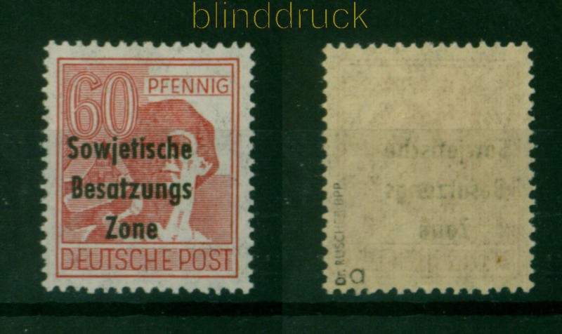 Sowjetische Besatzungszone Mi # 195 a postfrisch geprüft Dr. Ruscher BPP helle 60 Pfg. Aufdruckmarke postfrisch geprüft Dr. Ruscher BPP Erhaltung siehe Scan