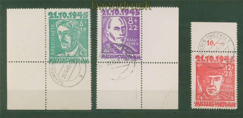SBZ Mi # 20/22 gestempelt Opfer des Faschismus geprüft Kramp BPP Eckrand(58916)