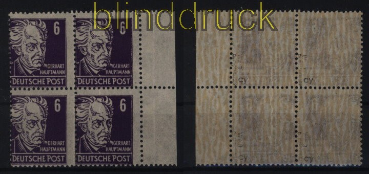 Sowjetische Besatzungszone Mi # 213 c y (4) postfrisch Borkengummi im 4er-Block gepr. Ruscher BPP 6 Pfg. Köpfe I im 4er-Block vom rechten Seitenrand alle Marken mit Borkengummi eine schöne Einheit postfrisch alle vier Marken bestens geprüft Dr. Ruscher BPP Erhaltung siehe Scan