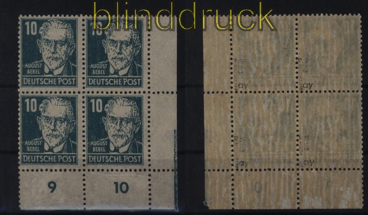 Sowjetische Besatzungszone Mi # 215 a y (4) postfrisch Borkengummi im 4er-Block gepr. Ruscher BPP 10 Pfg. Köpfe I im 4er-Block vom Eckrand unten rechts alle Marken mit Borkengummi eine schöne Einheit postfrisch alle vier Marken bestens geprüft Dr. Ruscher BPP Erhaltung siehe Scan