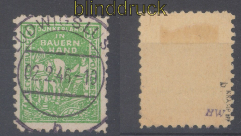 Sowjetische Besatzungszone Mecklenburg-Vorpommern Mi # 23 b gestempelt Bodenreform geprüft Kramp BPP 6 + 14 Pfg. Bodenreform dunkegelbgrün gestempelt geprüft Kramp BPP Erhaltung siehe Scan