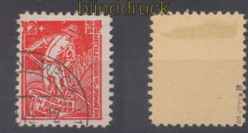 Sowjetische Besatzungszone Mecklenburg-Vorpommern Mi # 25 a gestempelt Bodenreform geprüft Kramp BPP 12 + 28 Pfg. Bodenreform rot gestempelt geprüft Kramp BPP Erhaltung siehe Scan