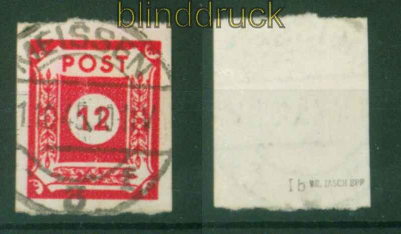 Sowjetische Besatzungszone Ost-Sachsen Mi # 46 A b I gestempelt volles Mittelstück geprüft Jasch BPP 12 Pfg. Ziffern dunkelrosarot geschnitten mit vollem Mittelstück gestempelt geprüft Jasch BPP Erhaltung siehe Scan