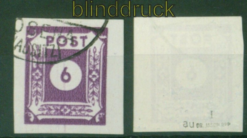 Sowjetische Besatzungszone Ost-Sachsen Mi # 62 a u I gestempelt 6 Pfg. Ziffer geprüft Dr. Jasch BPP ( 6 Pfennig Ziffernserie dunkelrotviolett gestempelt mit Plattenfehler I: volles Mittelstück geprüft Dr. Jasch BPP Erhaltung siehe Scan