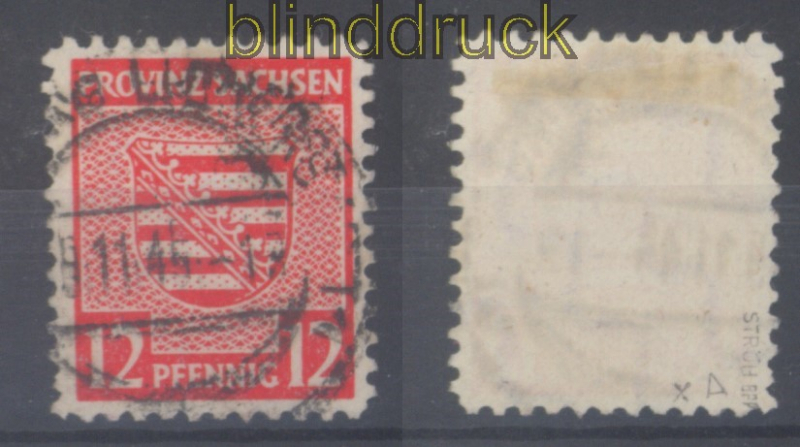 Sowjetische Besatzungszone Ost-Sachsen Mi # 71 X A Postmeistertrennung gestempelt geprüft Ströh BPP 12 Pfg. Provinzwappen Postmeistertrennung Wittenberg gestempelt geprüft Ströh BPP Erhaltung siehe Scan