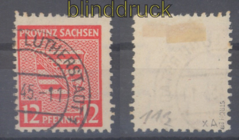 Sowjetische Besatzungszone Sachsen Mi # 71 X A gestempelt geprüft Ströh BPP 12 Pfennig Postmeistertrennung Wittenberg gestempelt geprüft Ströh BPP Erhaltung siehe Scan