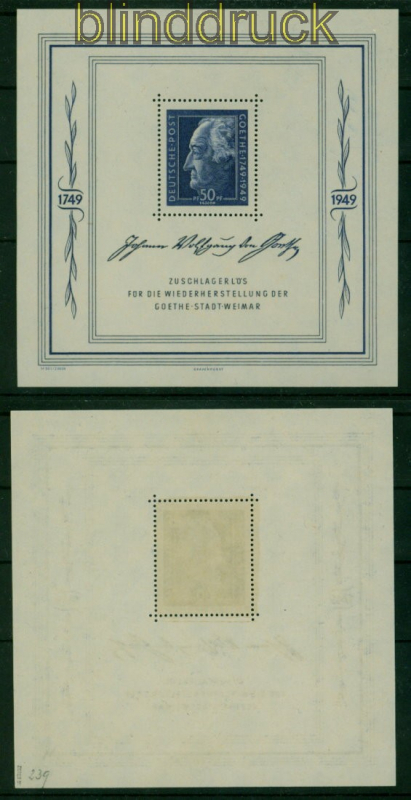 Sowjetische Besatzungszone Mi # Block 6 postfrisch Goetheblock Weimar signiert Zierer Allgemeine Ausgabe Goetheblock postfrisch signiert Zierer Erhaltung siehe Scan