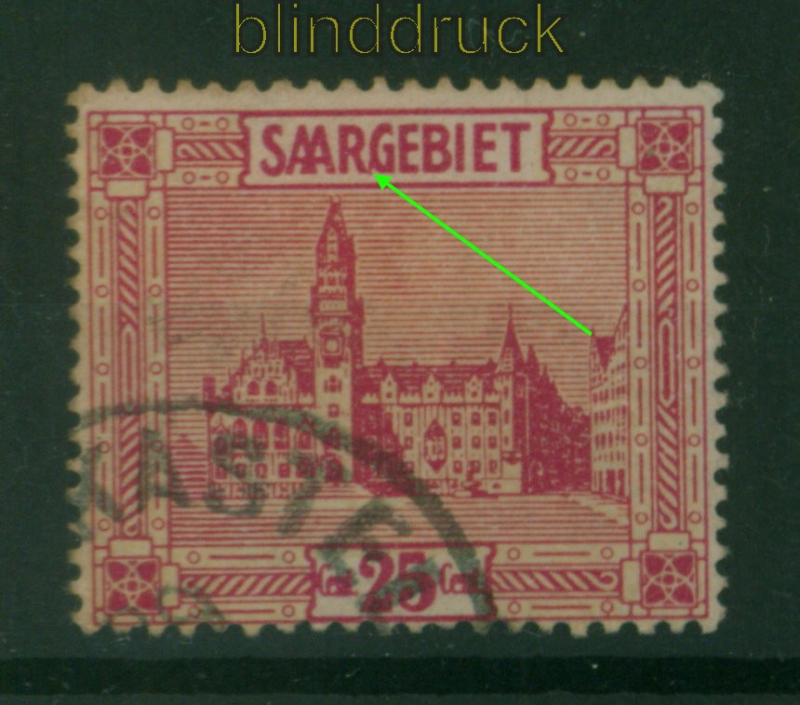 Saargebiet Mi # 100 VIII gestempelt Plattenfehler 25 C. Landschaftsbilder (IV) mit Plattenfehler VIII: G in Saargebiet unten mit Anstrich gestempelt Erhaltung siehe Scan
