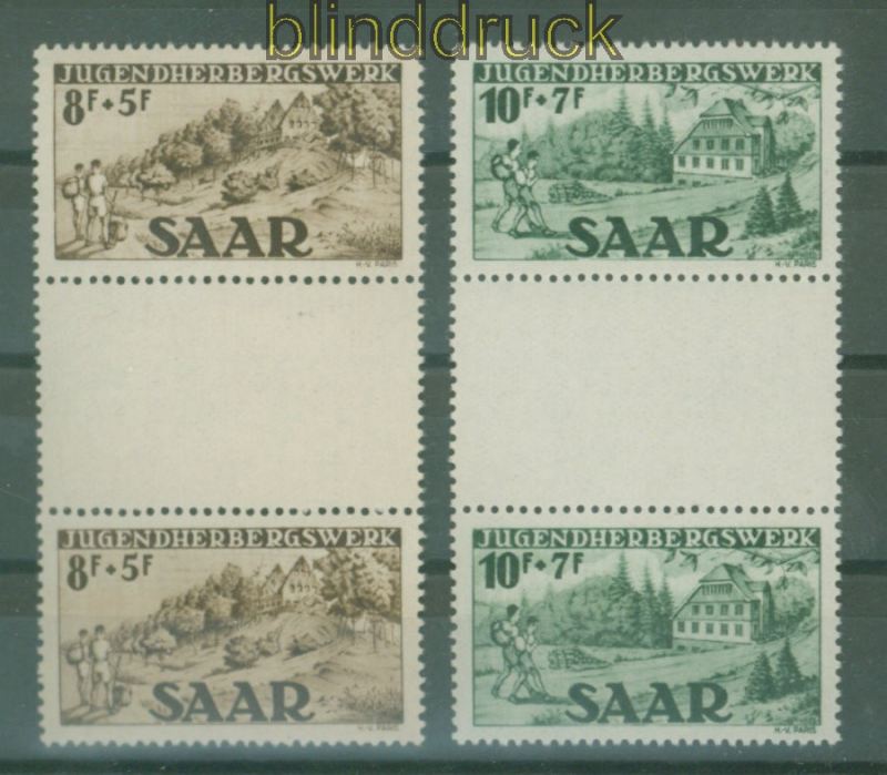 Saarland Mi # 262/63 ZS postfrisch Jugendherbergswerk mit Zwischensteg Jugendherbergswerk komplette Ausgabe im Zwischenstegpaar postfrisch Erhaltung siehe Scan