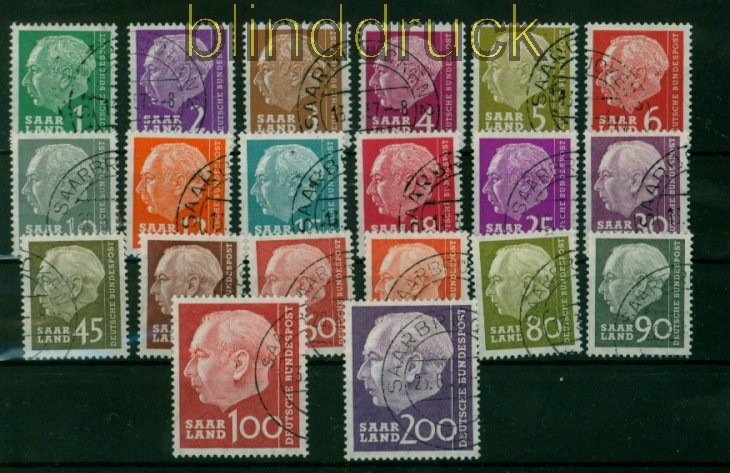 Saarland OPD Mi # 380/99 gestempelt Heuss (I) komplette Ausgabe einheitlich gestempelt Erhaltung siehe Scan