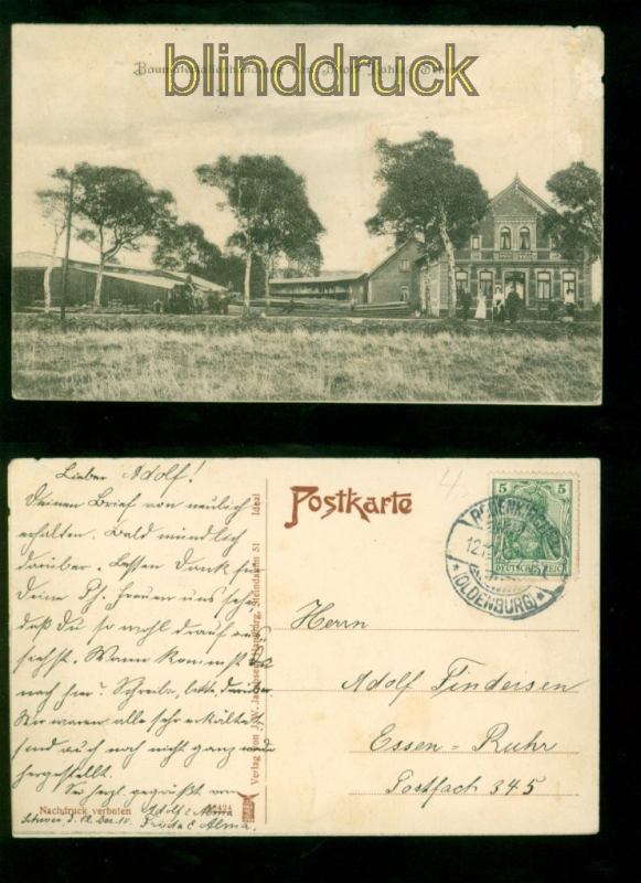 Niedersachsen Schwei sw-AK Baumaterialienhandlung von Adolf Kahle 1910 nach Essen Karte gelaufen aus Rodenkirchen 12.12.1910 nach Essen-Ruhr Verlag J.W. Jacobsen Hamburg oben rechts kleine Schürfungen Erhaltung siehe Scan