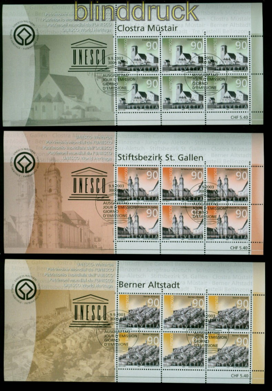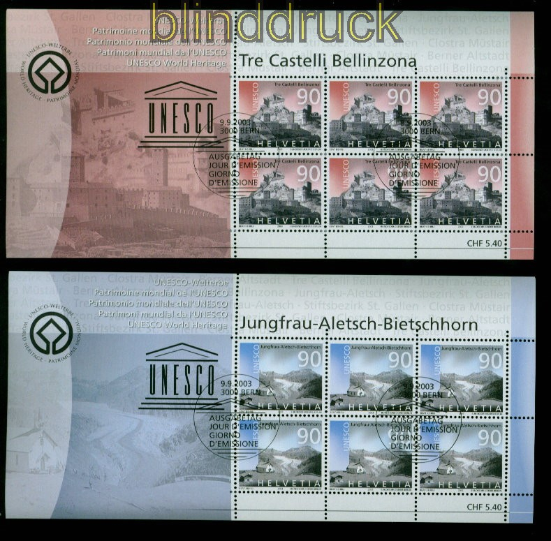 Schweiz Mi # 1846/50 Sonderstempel Kleinbögen UNESCO-Welterbe UNESCO-Welterbe fünf Kleinbögen mit Sonderstempel Erhaltung siehe Scan