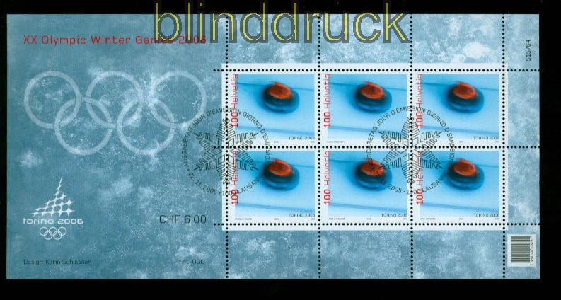 Schweiz Mi # 1949 Sonderstempel Kleinbogen Olympische Winterspiele 2006 Olympische Winterspiele 2006 Kleinbogen mit Sonderstempel SSt. Erhaltung siehe Scan