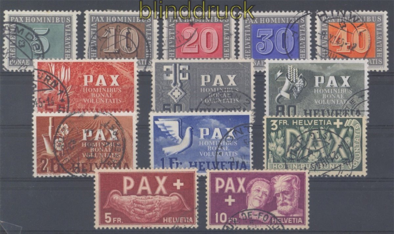 Schweiz Mi # 447/59 Pax-Satz gestempelt Waffenstillstand in Europa Pax-Satz komplette Ausgabe gestempelt Erhaltung siehe Scan
