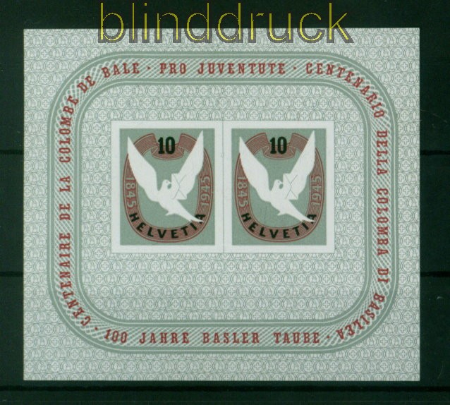 Schweiz Mi # Block 12 postfrisch Blockausgabe 100 Jahre Basler Taube Blockausgabe 100 Jahre Basler Taube postfrisch Erhaltung siehe Scan