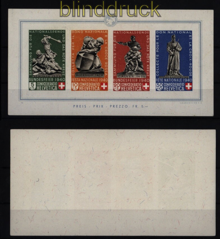 Schweiz Mi # Block 5 Pro Patria ungebraucht ohne Gummi Pro Patria 1940: Denkmäler der Block ist ohne Gummi günstiger Lückenfüller Erhaltung siehe Scan