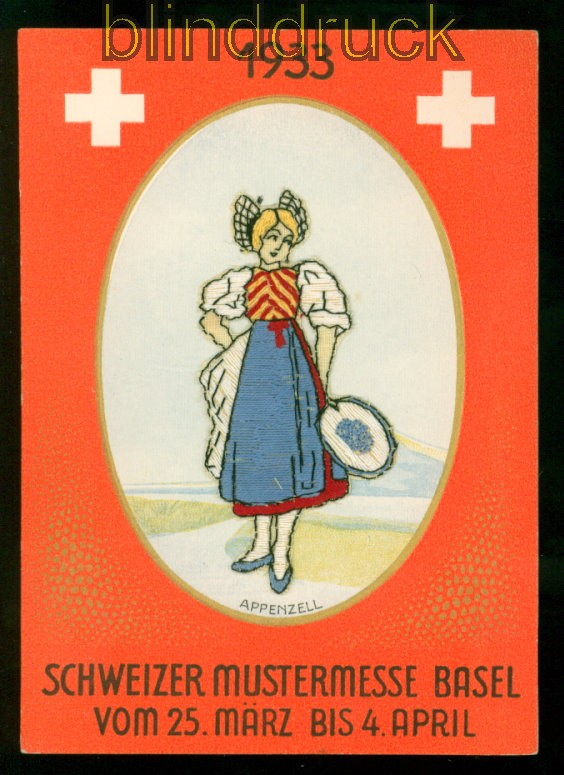 Schweiz Mustermesse Basel Sonderpostkarte März 1933 ungebraucht Sonderpostkarte der Schweizer Mustermesse Bael vom 25. März bis 4. April 1933 Karte mit Stickerei einer Tracht ungebraucht Erhaltung siehe Scan