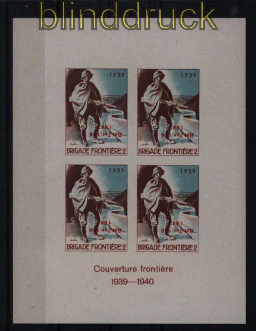 Schweiz Soldatenmarke Kleinbogen geschnitten kopfstehender Aufdruck postfrisch Soldatenmarke Kleinbogen mit vier Marken geschnitten Brigade Frontiere 2 1939 mit kopfstehenden zweileiligen roten Aufdruck: Bat. Ter. 166 / 1942 postfrisch Erhaltung siehe Scan