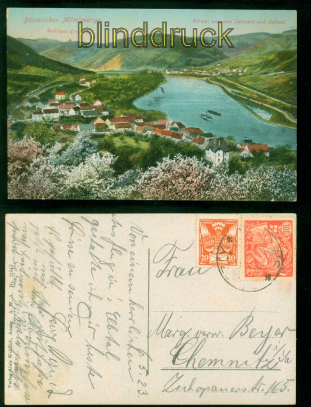 Sebusein und Salesel farb-AK Elbetal Teplitz-Schönau 1923 nach Chemnitz (d10393)