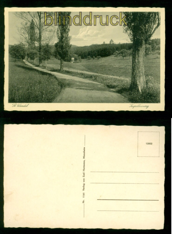Saarland St. Wendel sw-AK Kapellenweg ungebraucht Karte nicht gelaufen Erhaltung siehe Scan