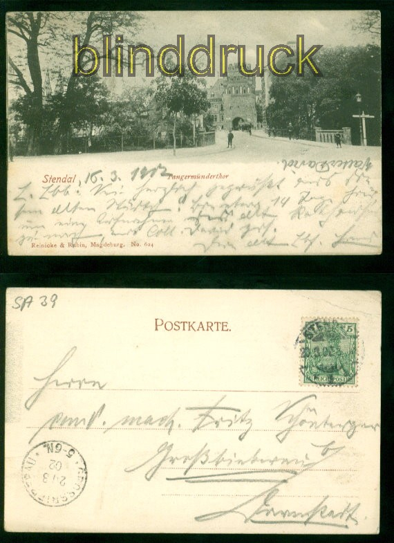 Sachsen-Anhalt Stendal sw-AK Tangermünderthor 1902 nach Grossbieberau Karte gelaufen aus Stendal 20.3.1902 nach Grossbieberau Erhaltung siehe Scan