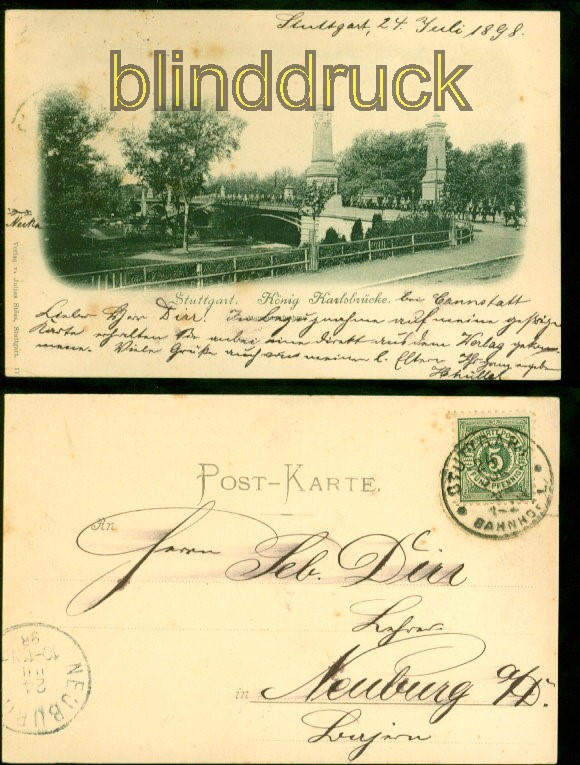 Stuttgart sw-AK König Karlsbrücke 1898 nach Neuburg (d8699)