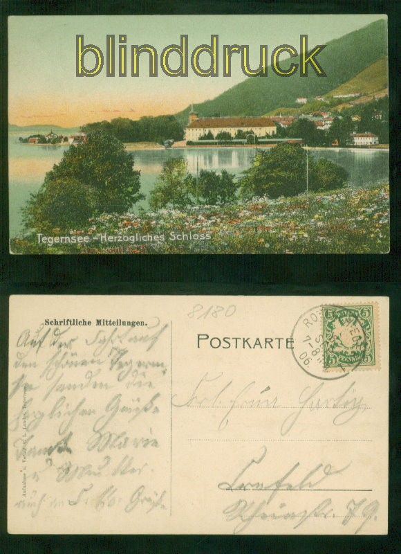 Bayern Tegernsee farb-AK Herzogliches Schloss 1906 aus Rottach Karte gelaufen aus Rottach 6.9.1906 Erhaltung siehe Scan