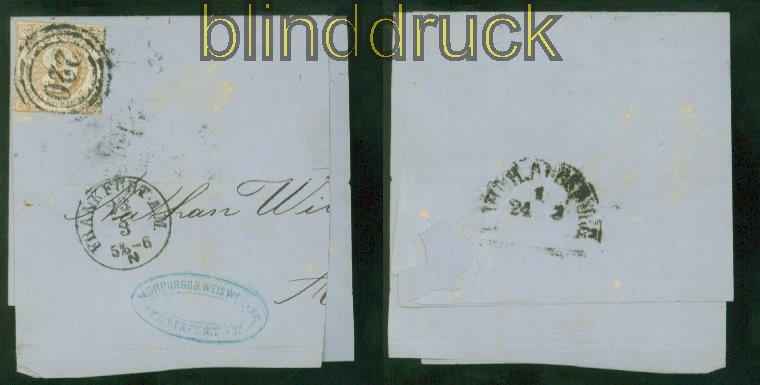 Altdeutschland Thurn & Taxis Mi # 44 gestempelt auf Briefstück 9 Kreuzer braun durchstochen 9 Kreuzer braun durchstochen weißes Papier entwertet mit Dreiring-Nummernstempel 220 für Frankfurt auf Teilbriefhülle Erhaltung siehe Scan